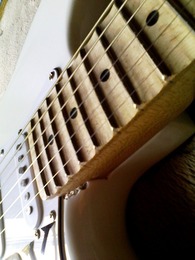 Squier's Cherry Sunburst Strat -> (taking a cue from Clap...