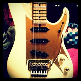 ヤフオクにて4200円で入手しましたモッキンバード型のギターを、エロゲ『キラ☆キラ』の紗理奈というキャラクターが使...
