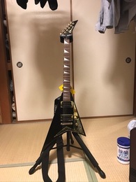 今は亡き河合のブランド・rockoonのVシェイプ。ショートスケールなのと何となく某F社のスモールVに似ているのと...