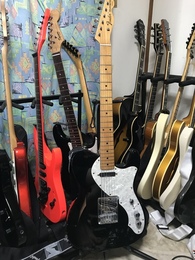 ボディとネックを調達して自分で組み立てたテレキャスタイプ。塗装はタミヤのフレンチブルー。この色にしたくて組み上げた...