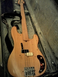 初期ロゴのフェルナンデス、しかもプレベのメイプル指板フレットレスです。