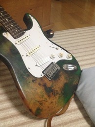 スクワイヤのチェリーサンバーストストラト→(クラプトンをパクり)グリーン(ニトロセルロース)へカラー変更+(余って...