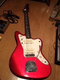 fender japanのジャズマスターです。キャンディアップルレッドでマッチングヘッドなのがカッコイイです。改造...